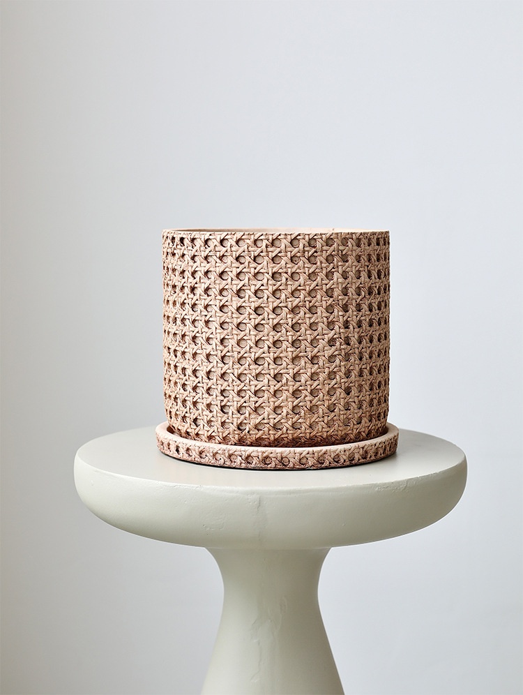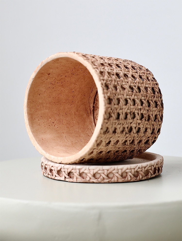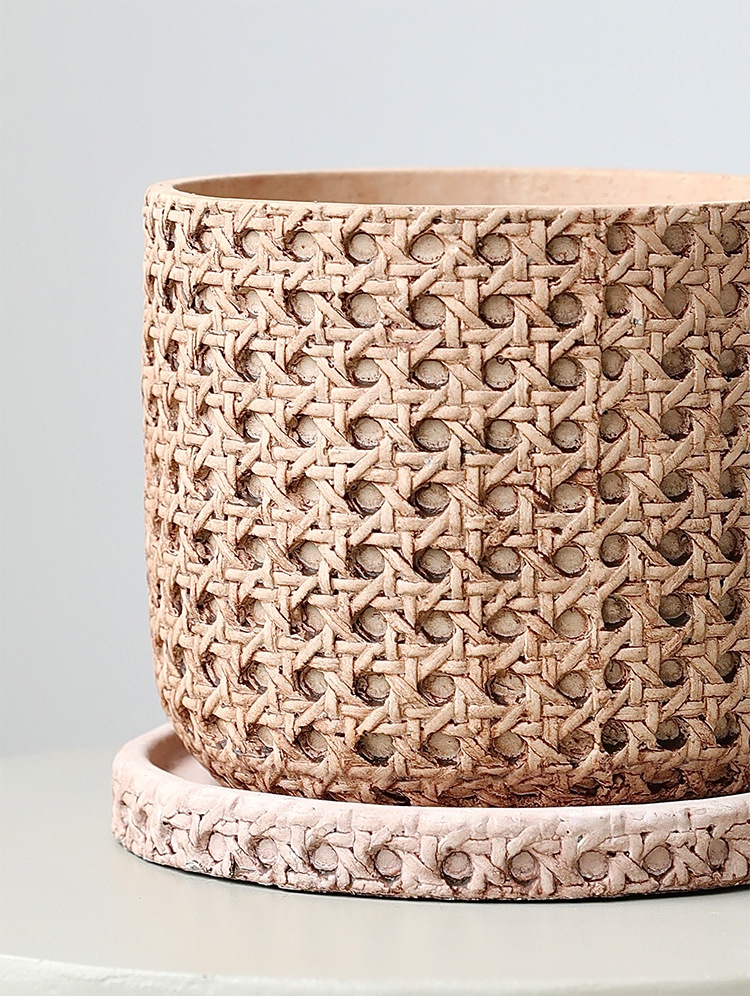 Woven Bamboo Straw Creative Green Plants Pots With Tray